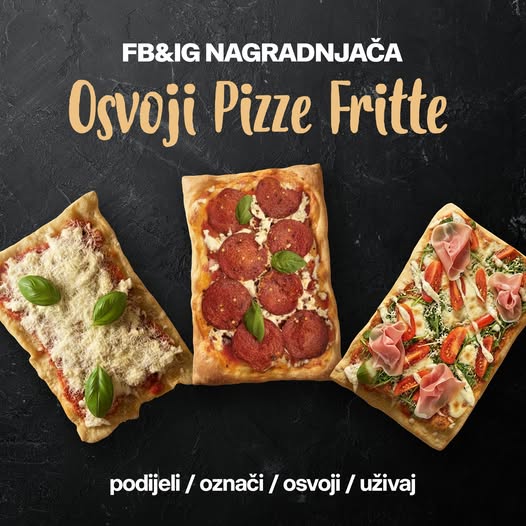 Dobitnik/ca osvaja 3× Funky Pizza Fritta (preuzimanje u lokalu ili uživanje na novoj terasi).
